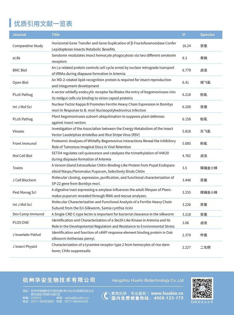 华安生物为昆虫研究领域提供个性化的抗体定制服务,适用于昆虫生物学、昆虫疾病研究等方向。我们的昆虫类抗体定制案例广泛应用于果蝇、蚊子等模式生物中,为研究昆虫的基因功能和分子机制提供了有力支持。