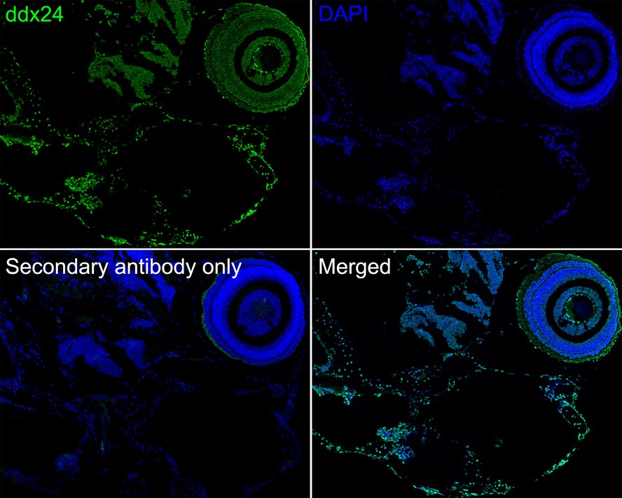 Immunofluorescence analysis of paraffin-embedded zebrafish (head) tissue labeling ddx24 with Mouse anti-ddx24 antibody (HA610066) at 1/50 dilution.