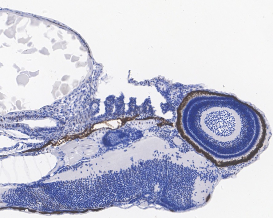 Immunohistochemical analysis of paraffin-embedded zebrafish tissue with Mouse anti-ddx24 antibody (HA610066) at 1/1,000 dilution.