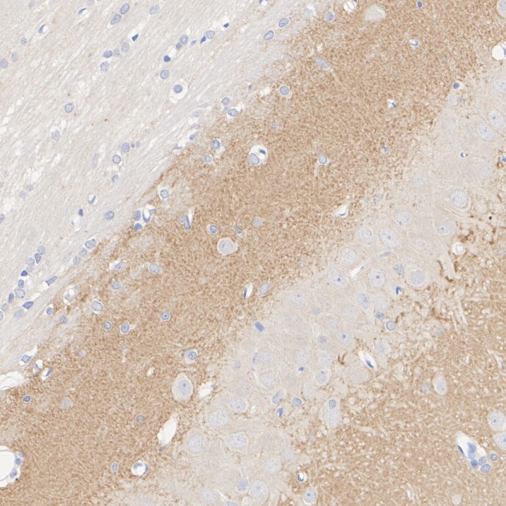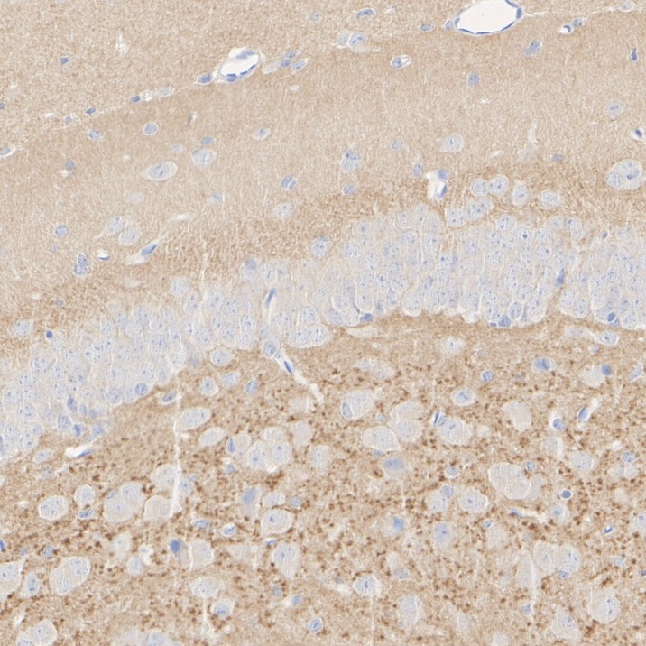 Immunohistochemical analysis of paraffin-embedded mouse hippocampus tissue with Rat anti-VGLUT1 antibody (HA610234) at 1/500 dilution.