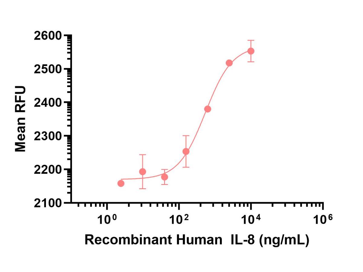 Chemotactic factor that mediates inflammatory response by attracting neutrophils, basophils, and T-cells to clear pathogens and protect the host from infection. Also plays an important role in neutrophil activation. Released in response to an inflammatory stimulus, exerts its effect by binding to the G-protein-coupled receptors CXCR1 and CXCR2, primarily found in neutrophils, monocytes and endothelial cells. G-protein heterotrimer (alpha, beta, gamma subunits) constitutively binds to CXCR1/CXCR2 receptor and activation by IL8 leads to beta and gamma subunits release from Galpha (GNAI2 in neutrophils) and activation of several downstream signaling pathways including PI3K and MAPK pathways.