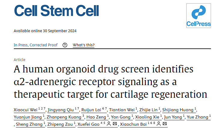 青科沙龙第123期 | Cell Stem Cell-基于人类器官的高通量药物筛选策略促进软骨再生