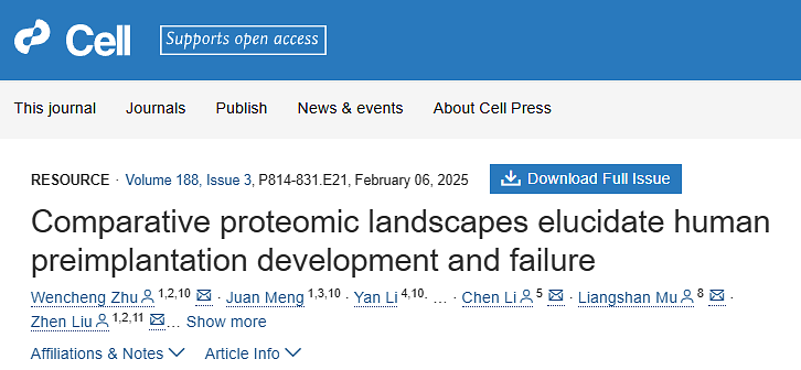 总之,该研究在技术改进、资源挖掘、发现探索和临床应用等方面进行了全面整合,为理解人类和小鼠的着床前胚胎发育,以及人类着床前发育失败提供了新的视角、资源和思路。 原文链接 Comparative proteomic landscapes elucidate human preimplantation development and failure: Cell