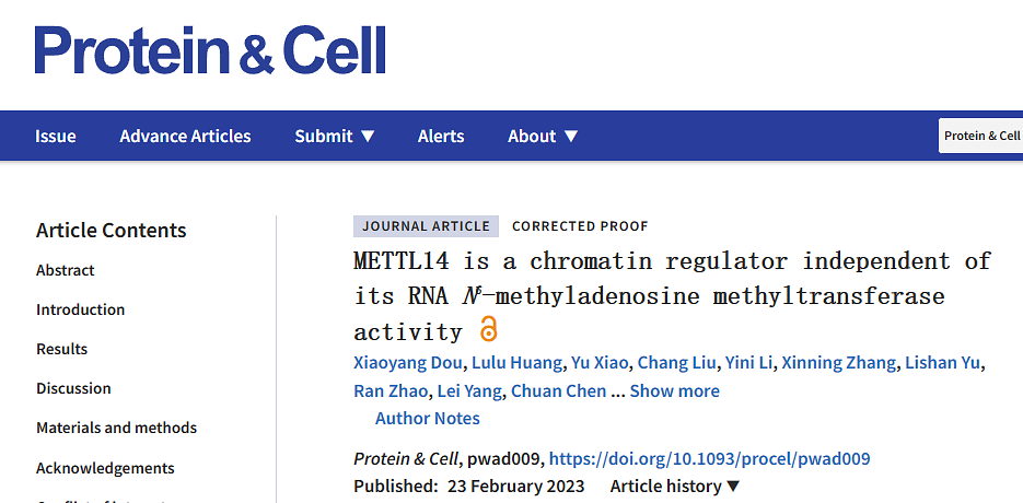 该研究揭示了METTL14独立于m6A的在染色质和基因转录调控方面的新功能。这项工作也提示了可能存在更多的RNA表观遗传修饰调控因子独立于甲基化的调控机制,为后续多种生物过程中的RNA修饰相关调控因子功能的研究提供了新的视角和思路。