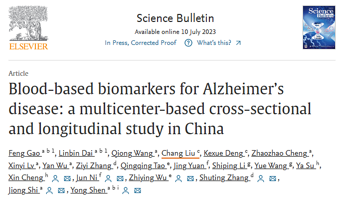 阿尔茨海默病(AD)是最常见的痴呆形式,也是老年人残疾的主要原因。在中国,估计有15万老年人患有痴呆,约占全球痴呆总人口的25%,然而我们对遗传驱动因素的理解是有限的。此外,由于中国地理区域辽阔,不同地区的生活方式、饮食习惯和气候条件存在显著差异。因此,进行协作的多区域研究以确定中国汉族人群AD的精确生物标志物至关重要。此外,研究表明,AD患者经常出现血管功能障碍和大脑结构改变,这突出了AD与血管损伤之间的密切关系。然而,目前尚不清楚脑血管疾病是否会影响AD的血液生物标志物。中国科学技术大学附属第一医院申勇、施炯教授团队联合北京协和医院倪俊教授团队、浙江大学附属第二医院吴志英教授团队、四川大学附属华西医院张舒婷教授团队以及复旦大学附属华山医院程忻教授团队在Science Bulletin在线发表了题为“Blood-based biomarkers for Alzheimer’s disease: a multicenter-based cross-sectional and longitudinal study in China”的研究论文。